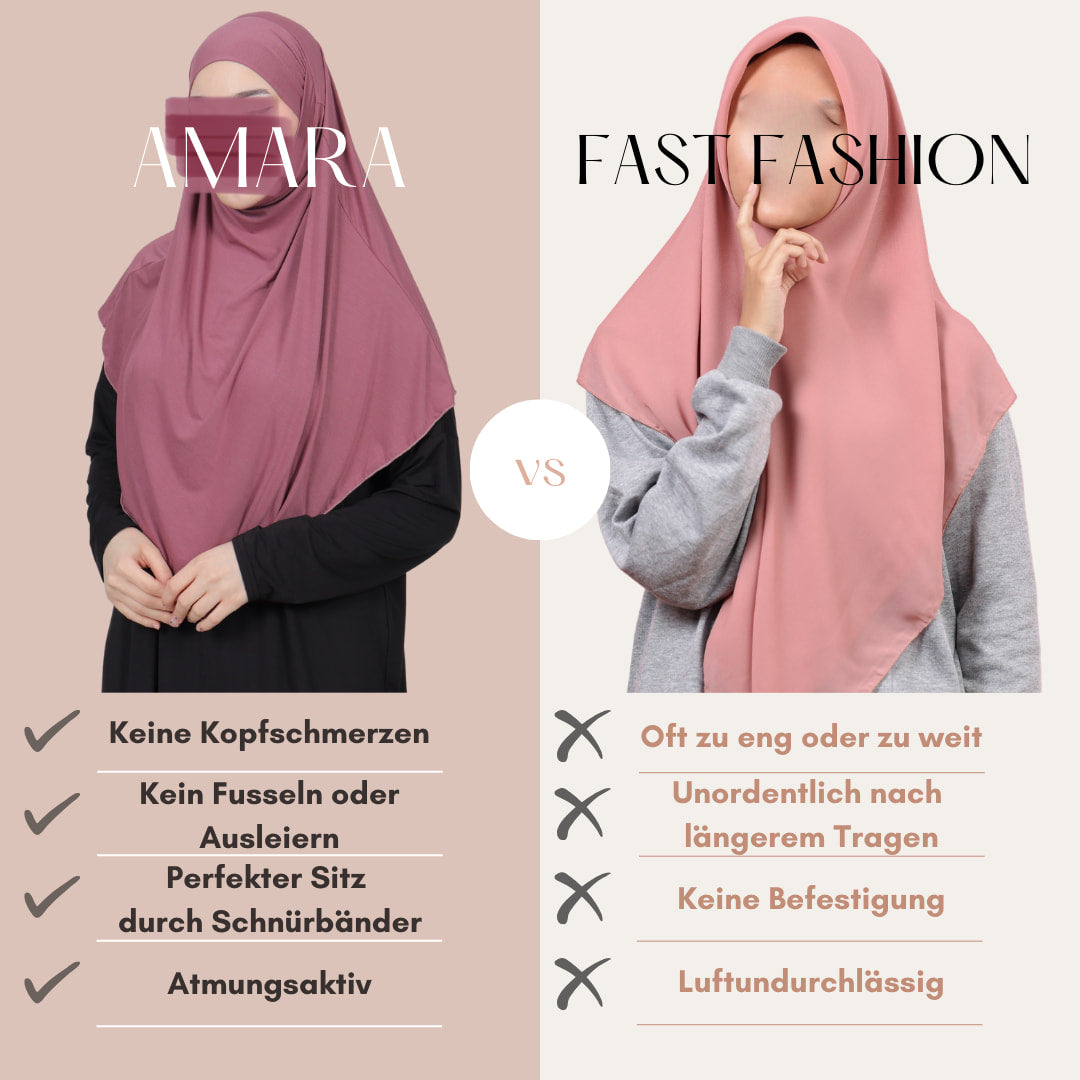 Unsere Jersey Mini-Khimar sind handgefertigt, daher kann es manchmal zu minimal unterschiedlichen Längen kommen als auf den Fotos abgebildet.
